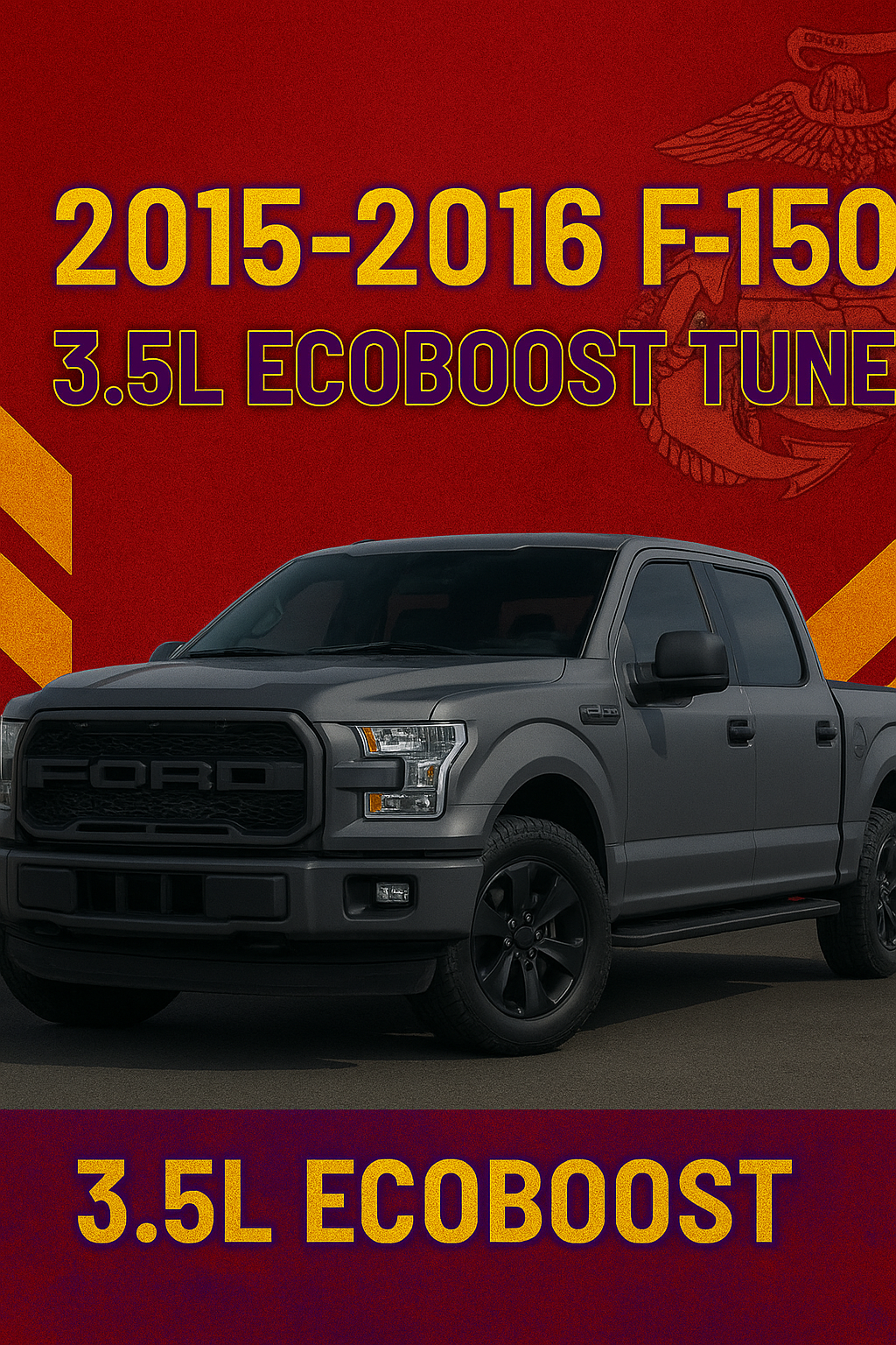 Unleash the twin-turbo heart of your 2015–2016 F-150 with Valor Motorworx’s custom 3.5L EcoBoost tuning. Whether you’re towing, daily driving, or chasing ETs, our calibration sharpens throttle response, optimizes torque delivery, and enhances shift performance — all while maintaining factory reliability and safety.